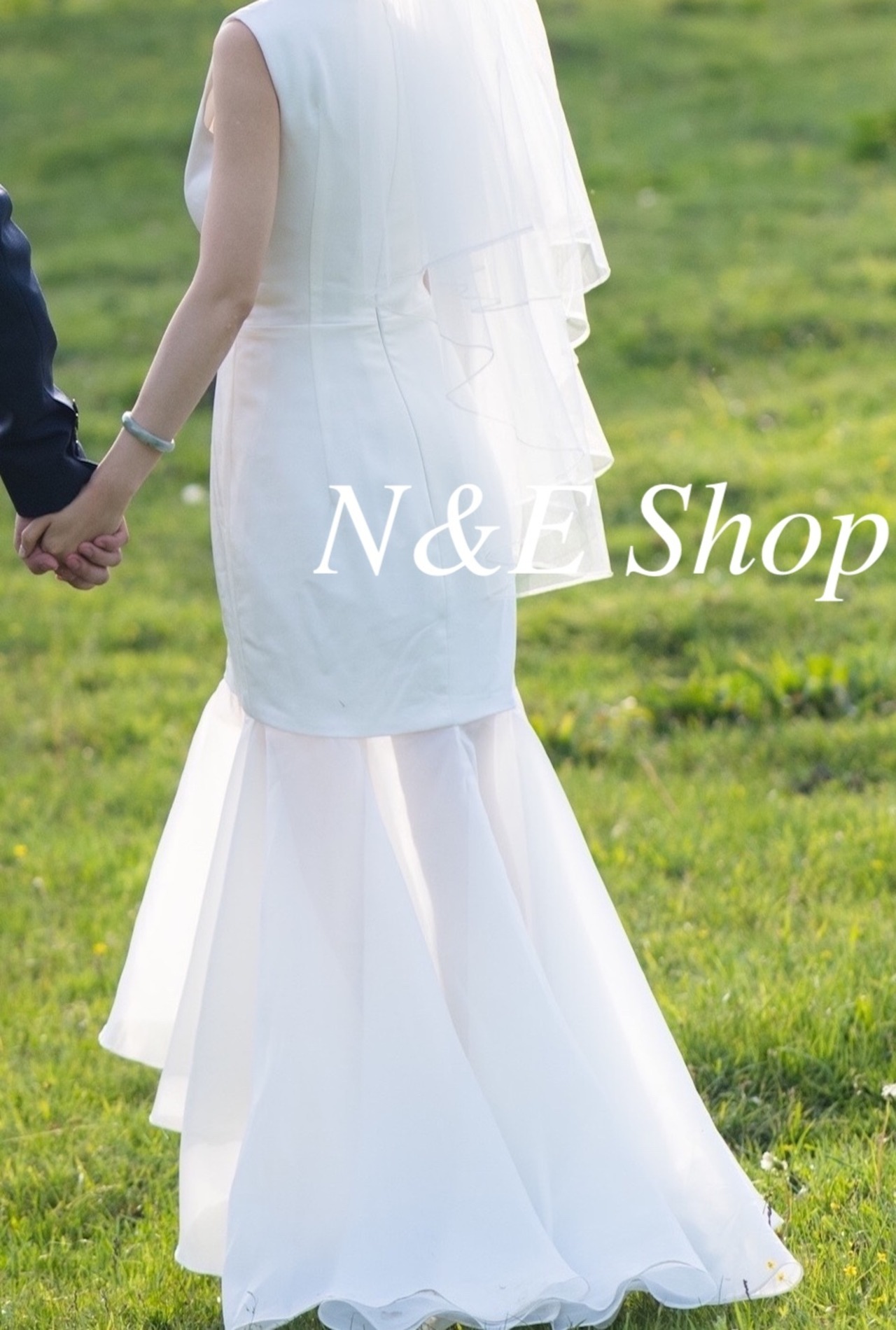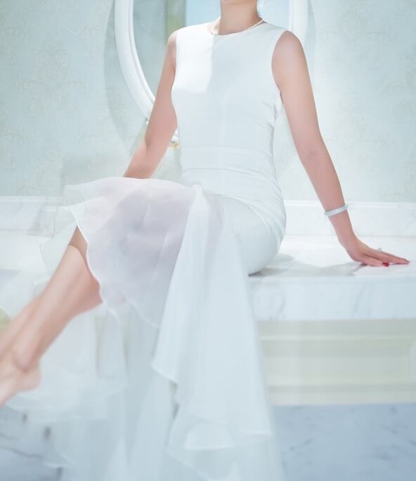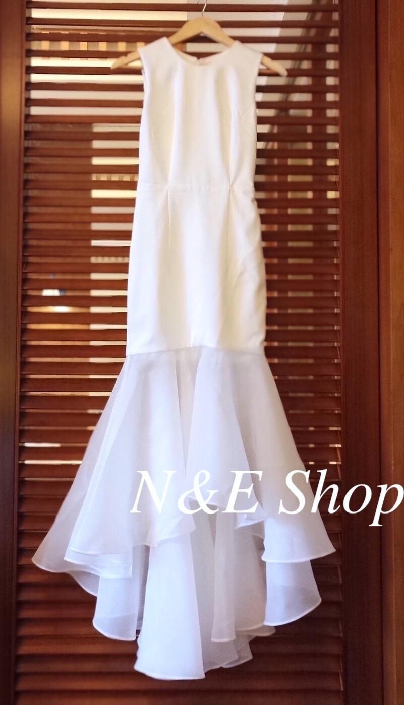 結婚式/ウェディング/花嫁/二次会/パーティー/ドレス/撮影/前撮り/ロング丈/ナイトドレス/イブニングドレス/ブライダル/ロングドレス/ファスナー/裾フリル/スレンダー/後撮り/ティアード