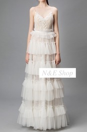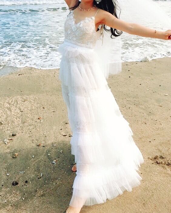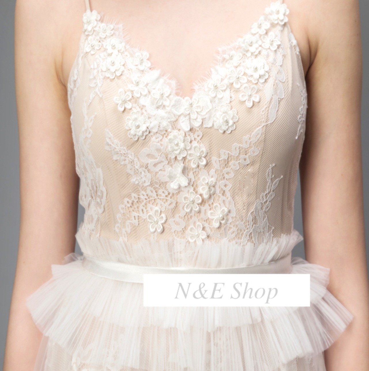 結婚式/ウェディング/花嫁/二次会/パーティー/ドレス/撮影/前撮り/背中開き/Vカット/フラワーレース /花/フラワー刺繍 /フラワー/ロング丈/ナイトドレス/イブニングドレス/ブライダル/ロングドレス/包みボタン/スレンダー/後撮り/オープンバック