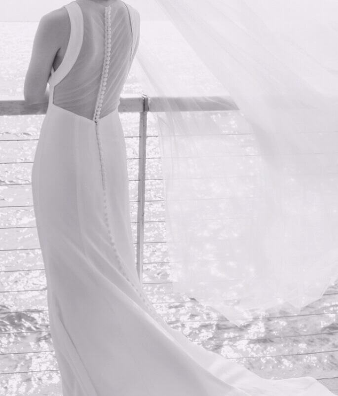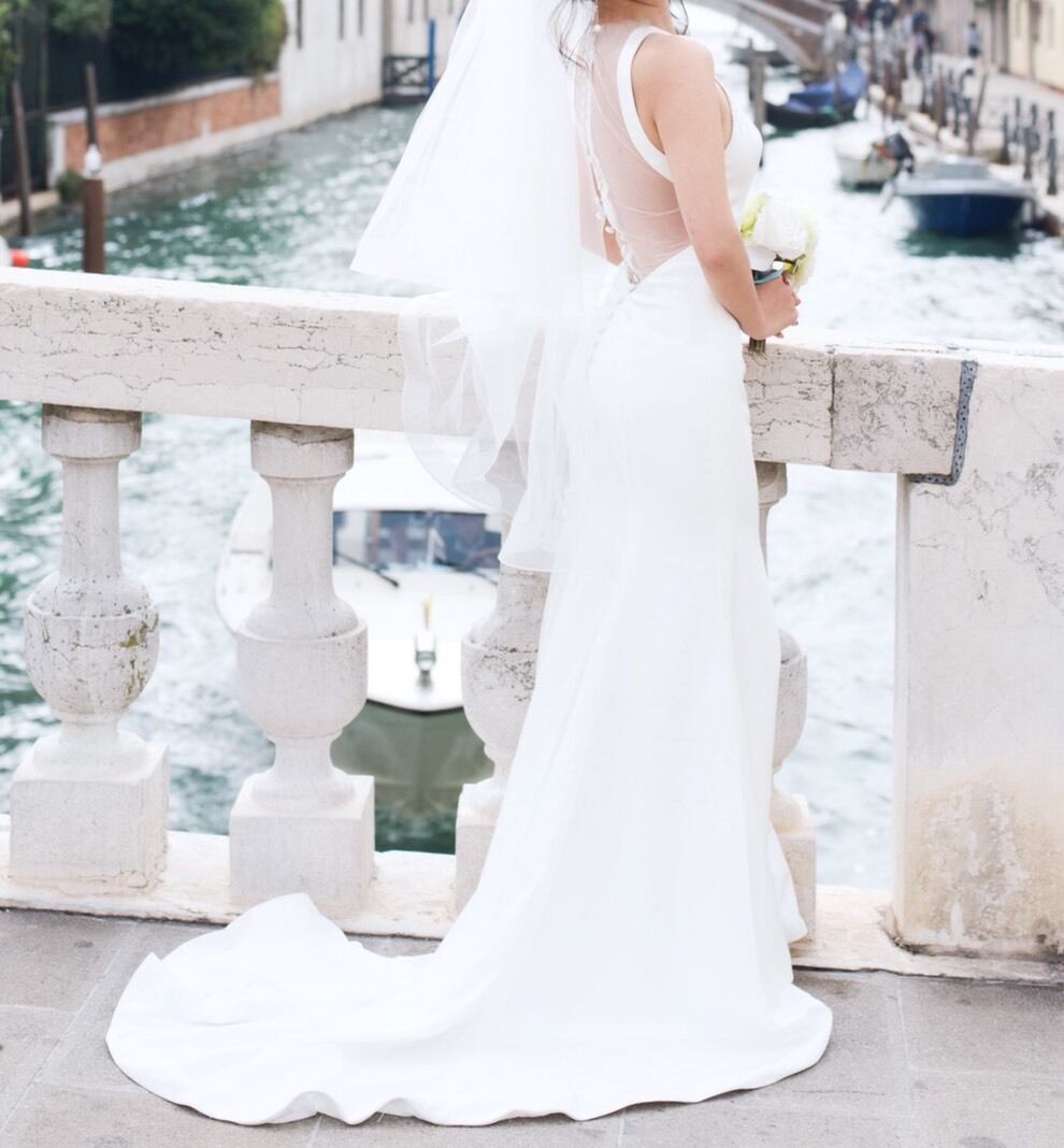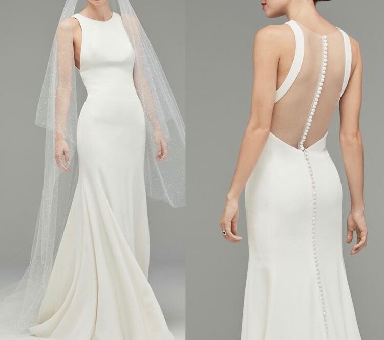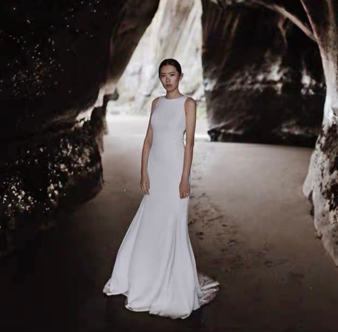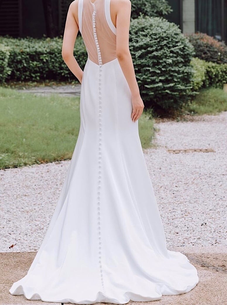 結婚式/ウェディング/花嫁/二次会/パーティー/ドレス/撮影/前撮り/ナチュラル/ドレス/ブライダル/後撮り/ラウンドネック/ノースリーブ/スレンダー/オープンバック/バックシャン